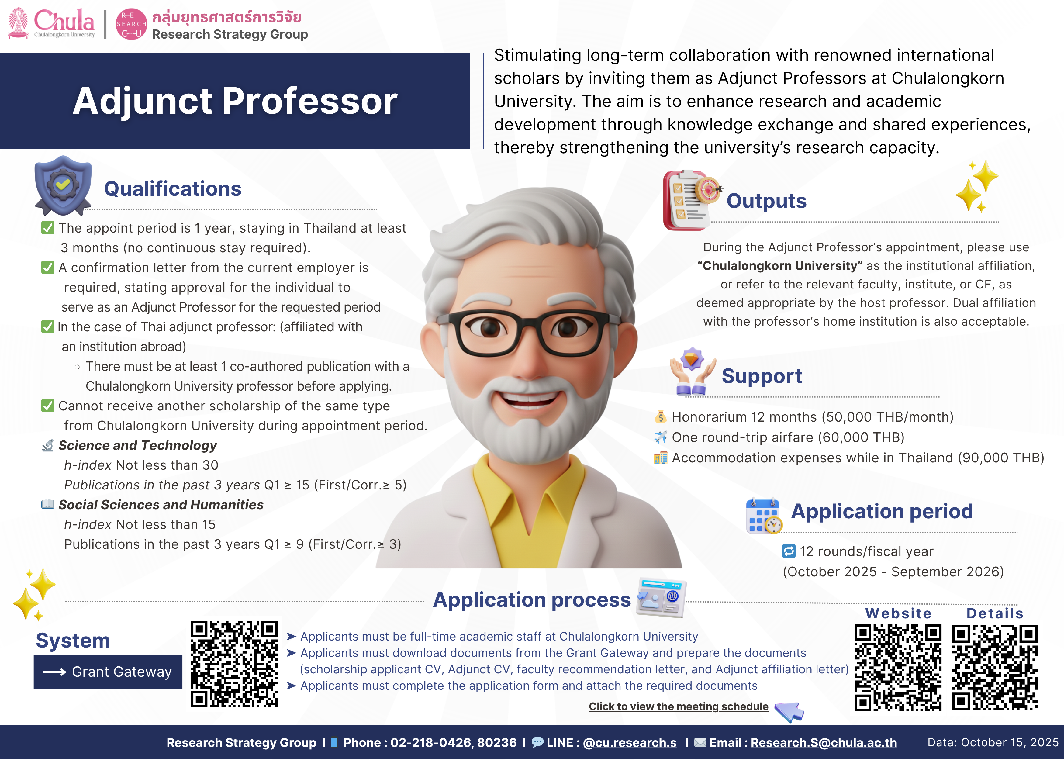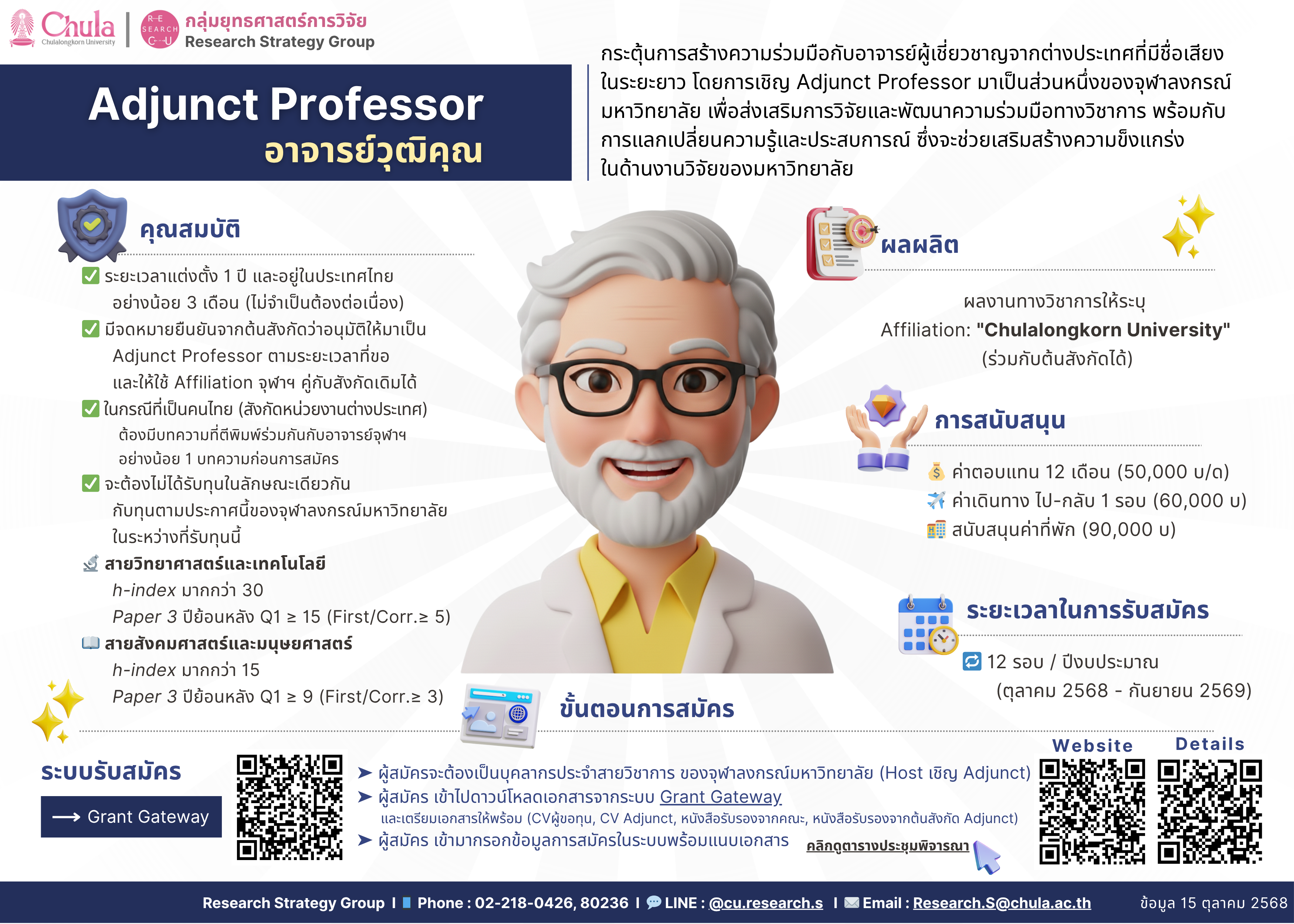 2.อนุญาตให้ Adjunct Professor ใช้ Affiliation ของจุฬาลงกรณ์มหาวิทยาลัยคู่กับต้นสังกัดได้